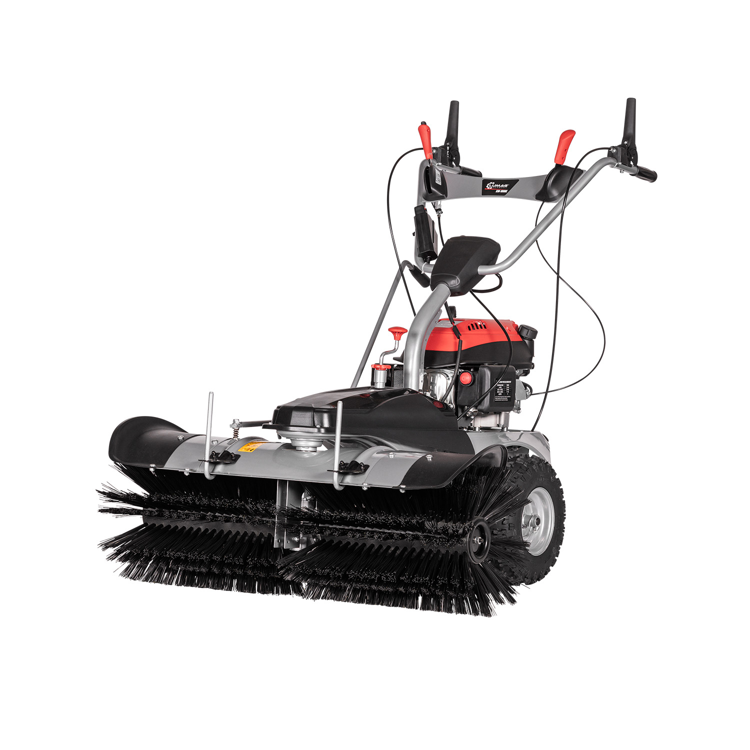 Die neue Lumag Schnee- und Schmutzkehrmaschine KM-1000E jetzt mit E-Startfunktion und neuen Bürsten, ist der ideale Helfer für Einsätze in Kommunen, in der Industrie oder für den privaten Gebrauch. Mit dieser kompakten und wendigen Kehrmaschine können Sie nasses und trockenes Laub, Steine, Papier, Dosen und feinen Schmutz auf jeder Oberfläche kehren - sei es auf Asphalt, Beton, Verbundsteinen oder Fliesen. Die KM-1000E verfügt über drei Vorwärts- und einen Rückwärtsgang sowie eine verstellbare Drehzahl der neuen Kehrbürste mittels Hebel am Bediengriff, was Ihnen ein effizientes Arbeiten ermöglicht. Die schwenkbare und in der Höhe einstellbare Bürste erleichtert das Kehren in schwierigen Bereichen. Mit einer maximalen Geschwindigkeit von 4,3 km/h und der Höhenverstellung des Bediengriffs für ergonomisches Arbeiten, können Sie mit der KM-1000E auch größere Flächen mühelos kehren. Die Kehrmaschine wird mit Schneeschild und Kehrgutsammelbehälter geliefert und ist somit bestens für den Einsatz im Winter gerüstet.