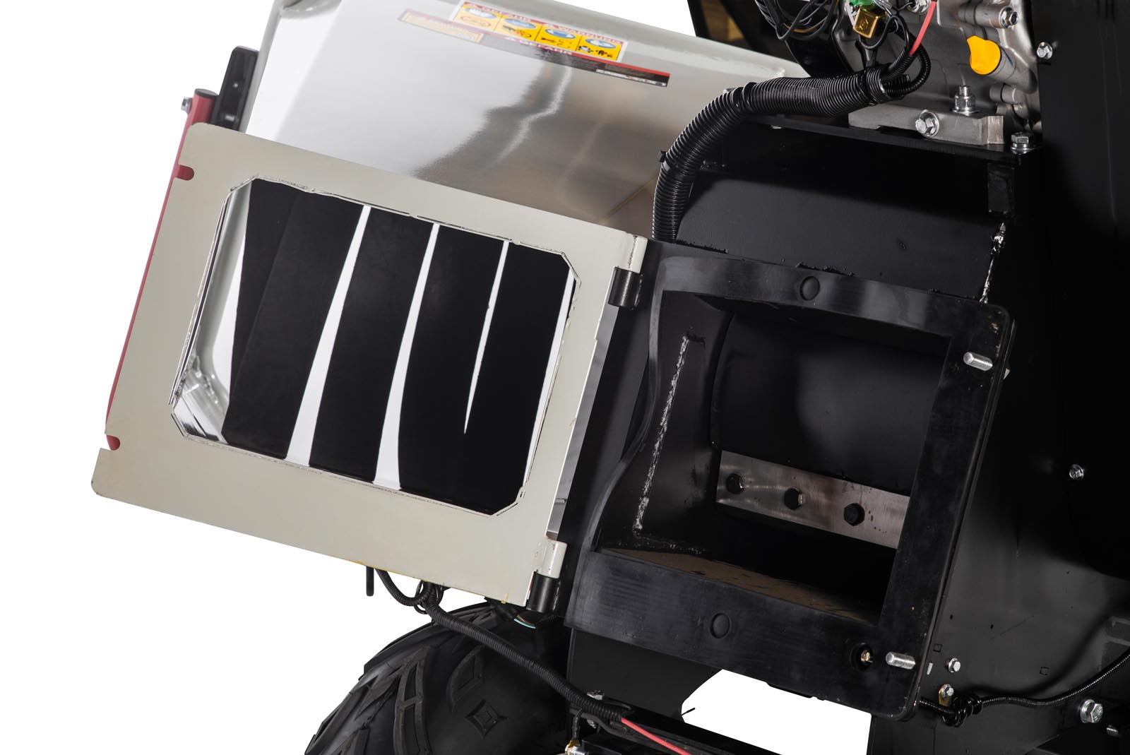 - Verstellbarer Auswurfschacht sowie Auswurfklappe.